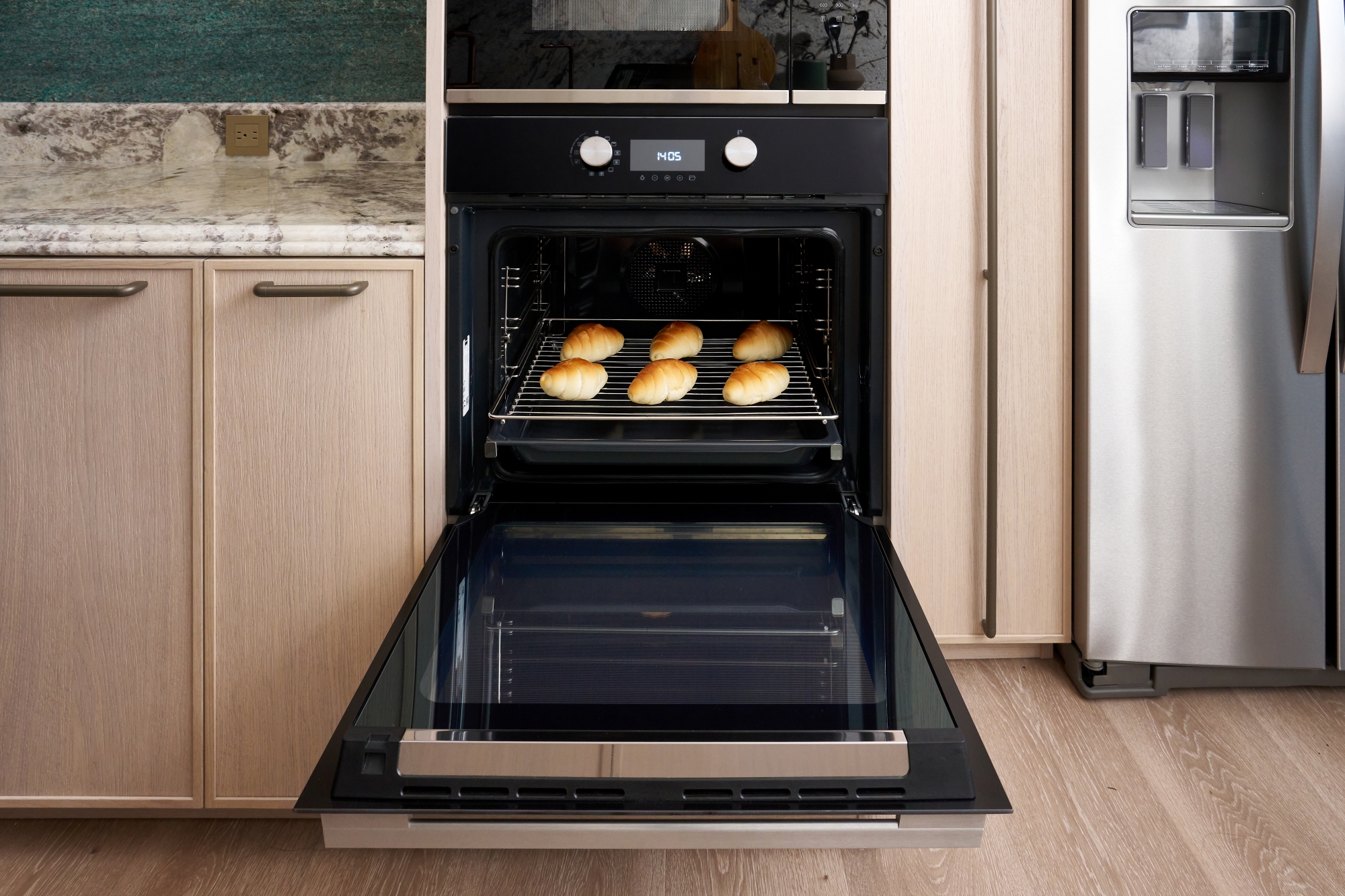 鄧總監坦言自己生活忙碌,並非天天下廚的人,但正因如此,她更在意廚房是否是一個「讓人想走進來」的空間。她的日常料理型態以輕食、煲湯為主,週末會跟孩子一起做早餐,偶爾朋友來訪才會進行較高火力的家常料理。這樣的使用狀態,直接影響到她對廚電「多功能而不複雜」的期待,她不希望為了不同料理而堆疊過多設備,而是一機多用、直覺操作。