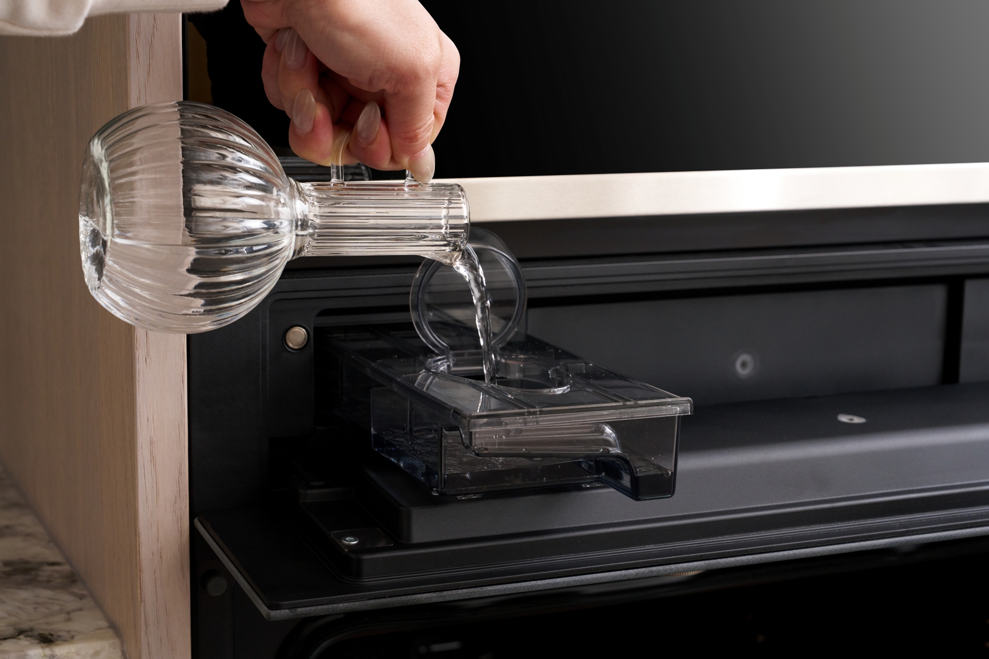 ↑TEKA 60cm 舒肥蒸烤箱採用直覺式加水設計,並搭載水自清系統,降低清潔負擔,讓高機能設備操作更便利、維護更輕鬆。